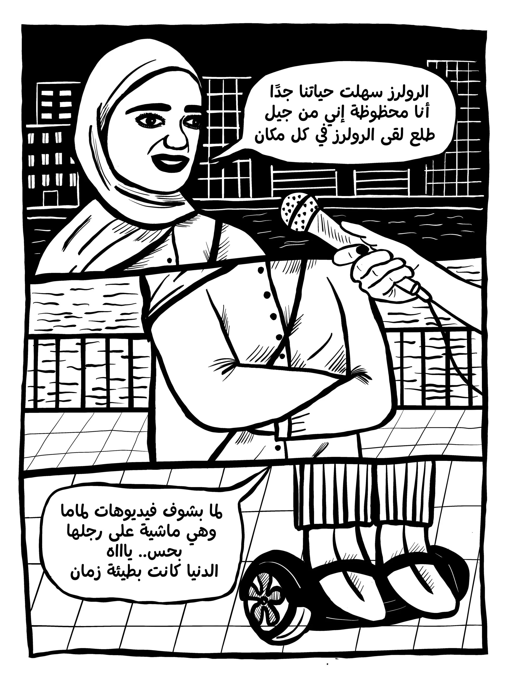 من هذه المشاهد اليومية، انطلق في قصة متخيّلة لكنها ليست بعيدة، لأرسم مستقبل مدينة القاهرة، وربّما مستقبل العديد من المدن الأخرى التي بات يستبدل فيها المتزحلقون اليافعون أقدامهم بالعجلات والرولرز. ماذا لو بات المشي حركة بائدة في مدننا العربية التي تتبدّل بسرعة؟