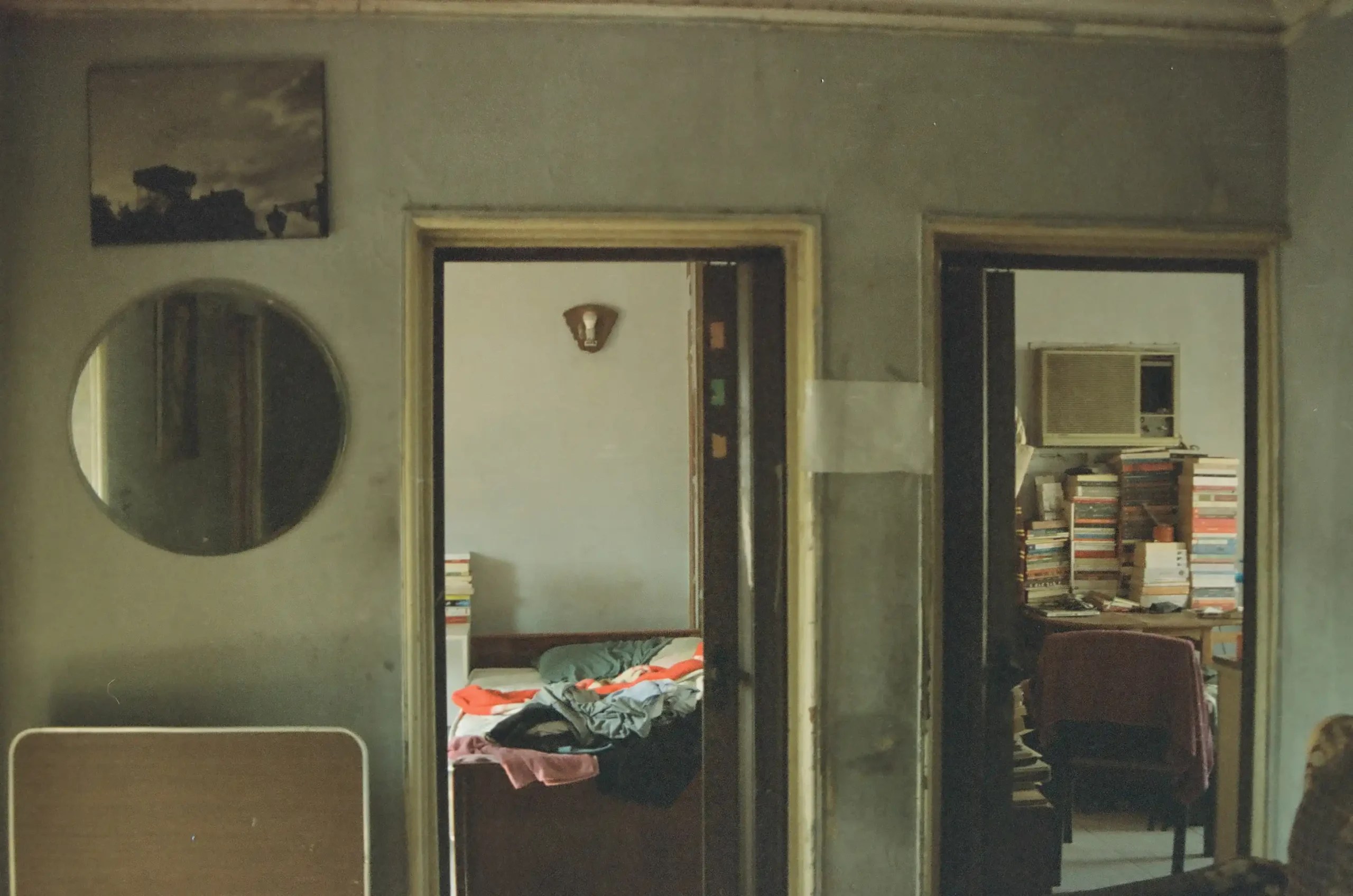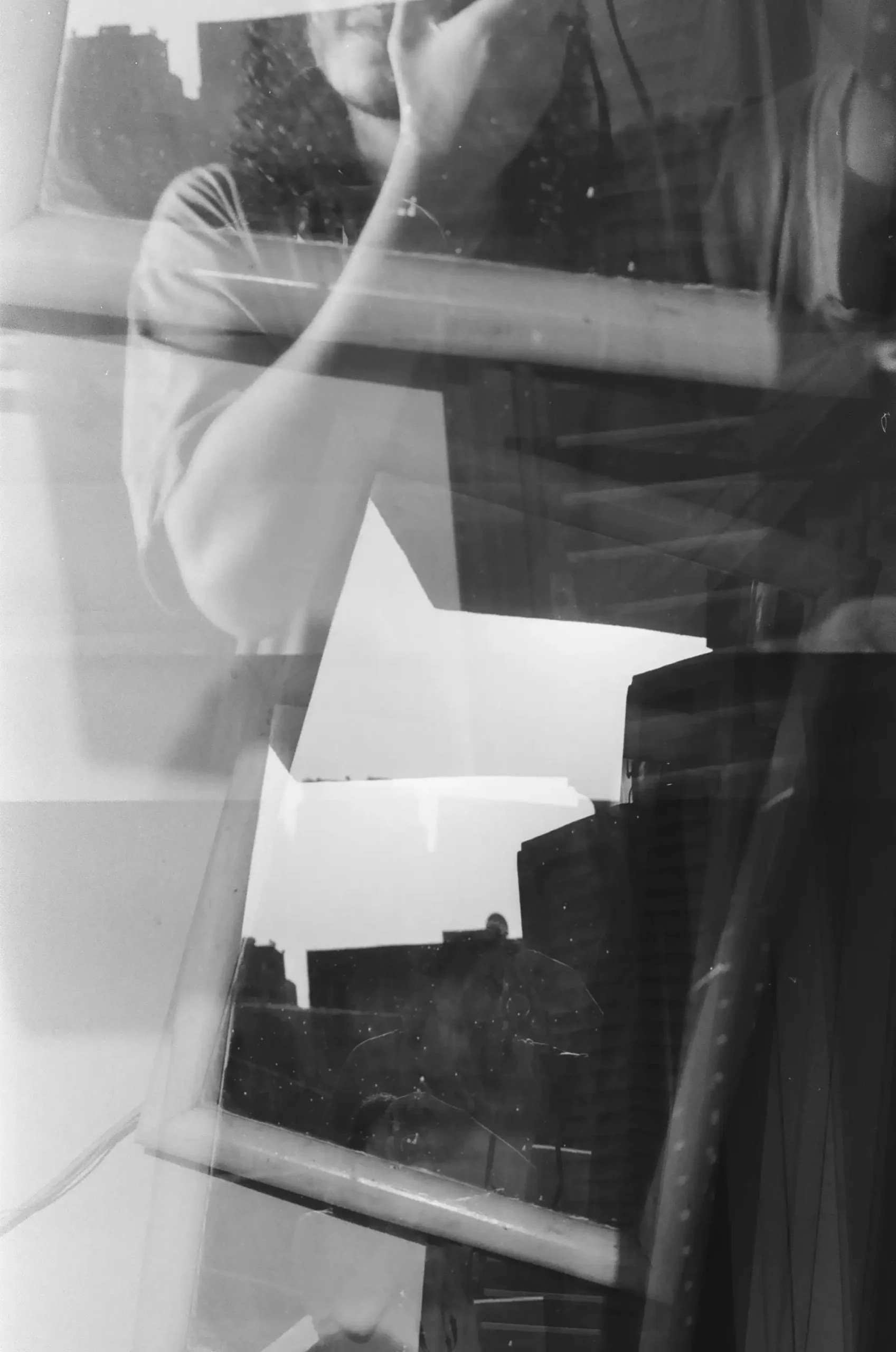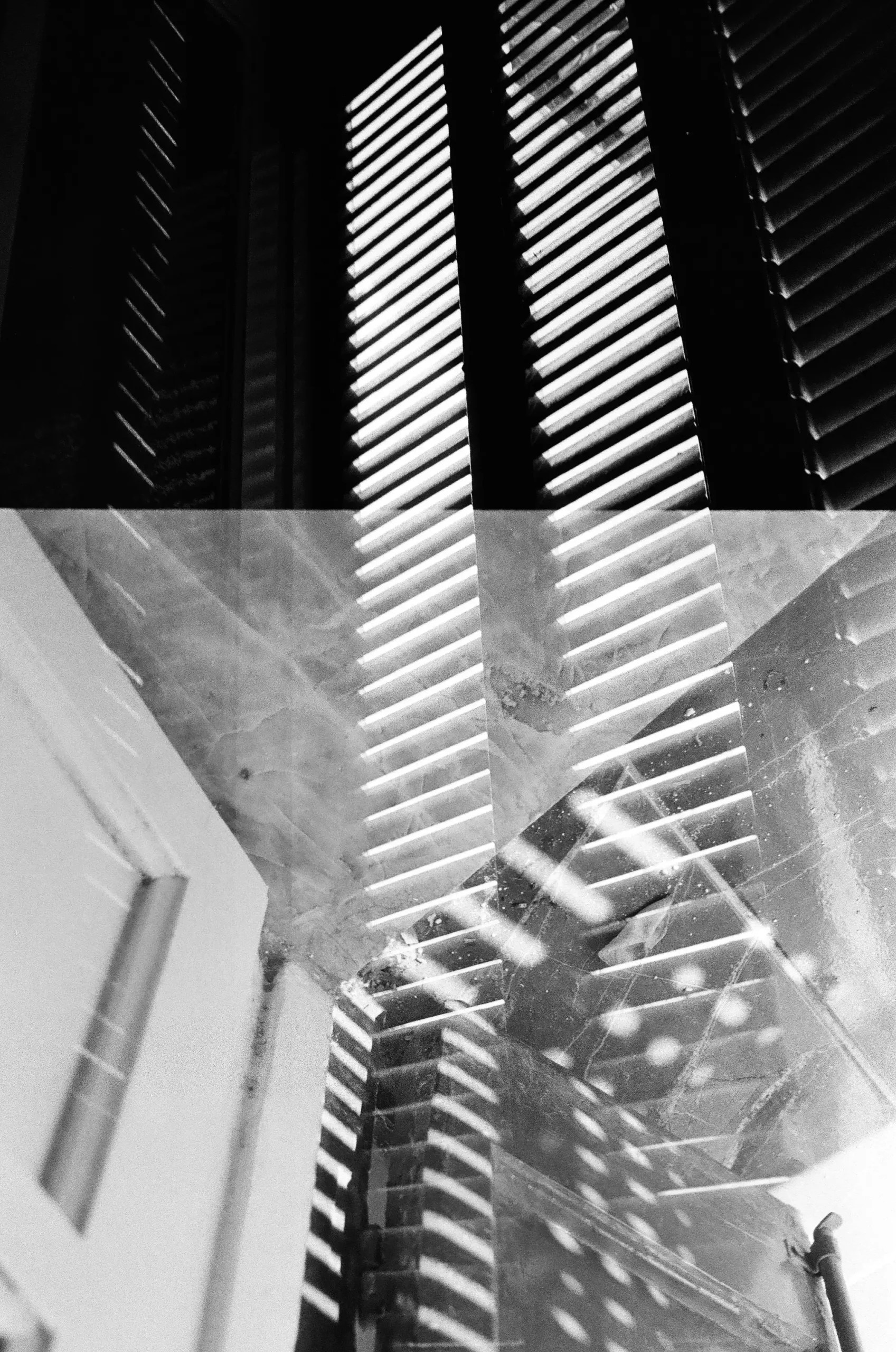 لم أكن أدرك أن شعور الغربة الذي أحمله بداخلي أصبح جزءًا مني، يتضاعف أحيانًا في نوبات ويخفت في نوبات أخرى، رُبما لذلك قرّرت أن أصور منزل أهلي، وسكن أصدقائي. صوّرتهما دون تصوّر واضح لما سأفعله بهذه اللقطات، ولكنني فعلت ذلك في محاولة لتوثيق العالم كمدخل لفهمه، لتداهمني أفلام الخام بصور شكّلت القصّة بمعزل عني.. بالأبيض والأسود، أردت الرجوع إلى بيت أهلي، لكن الفيلم الذي صوّرته خرجت نتائجه مغايرة، جاءت بعض الصور مليئة بالتعريض المزدوج (Double exposure) دون أن أقصد ذلك. حدثت مشكلة في تمرير شريط الفيلم داخل الكاميرا، فأصبح الإطار الواحد يصوّر في بعض اللقطات صورتين أو ثلاثة، ذلك الانشطار الذي يظهرني كشبح، أو يدمج بعض الصور ببعضها، جعلني أمسك ذلك الشعور الذي أظهرته الكاميرا: هذا أنا، وهذا البيت الذي تركته قد صار غبشًا بلا هيئة واضحة. هل تقصّدت الكاميرا تظهير الغربة بهذه اللقطات المتداخلة؟ وهل تعمّدت رصد علاقتي المهتزّة مع البيت الأوّل، تلك العلاقة التي تبدّلت إلى الأبد؟
