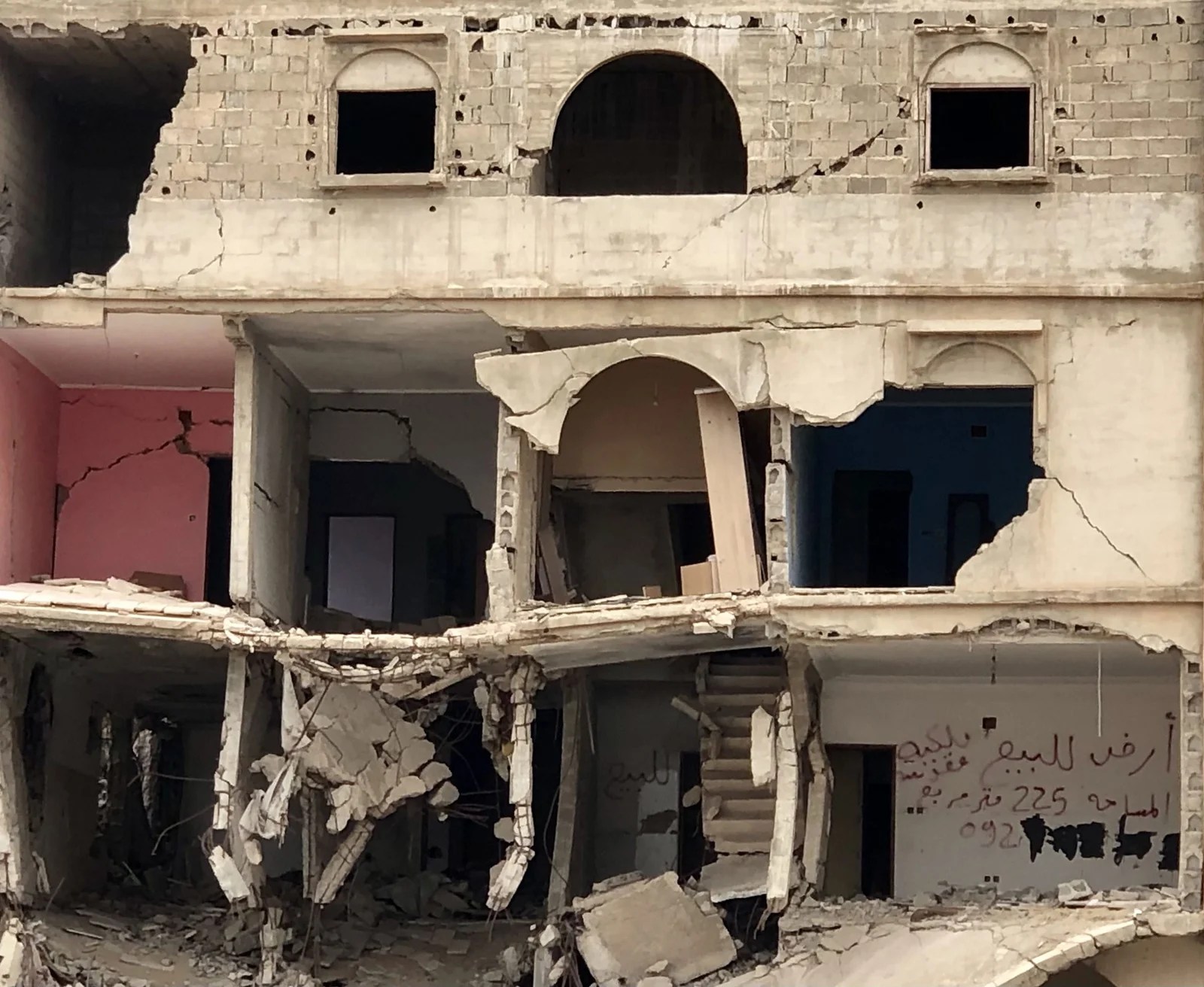 أن تمر بشارع محور الحرب في درنة -أو أي مدينة ليبية شهدت أحيائها السكنية معارك- وترى البيوت متهالكة ومكوّمة فوق بعضها حيث لا ملامح لحدود هذا الشارع أو ذاك، يعني أن هناك أناساً اقتُلعت جذورهم و تهاوت ذكرياتهم وانحسرت تماماً كمشهد الدمار.. كثيرون فقدوا بيوتهم أو انتُزعت منهم، آخرون فضلوا البقاء رغم رعب القنابل ولم يغادروا.. نعم، قد نستطيع التعبير بالأرقام عن النزوح الذي تعرضت له عائلات ليبية كثيرة، لكن هل هناك رقم يعكس حقيقة أن تفقد زاويتك المنجية من هذا العالم، وما يرافقها من ألم وتيه؟ بينما يبقى بيتك وكل ما فيه لا يُعرف إلا برقم في قائمة لا تنتهي من البيوت المدمرة..